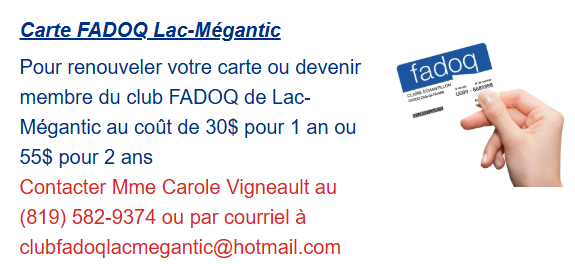 La FADOQ est le plus grand organisme de personnes aînées au Canada, avec plus de 600 000 membres, 690 clubs, 16 regroupements régionaux et près de 4 700 administrateurs bénévoles. Fort d’une longue et fructueuse tradition d’un demi-siècle, elle demeure bien de son temps et est plus que jamais un joueur indispensable sur l’échiquier d’un Québec à la population vieillissante.