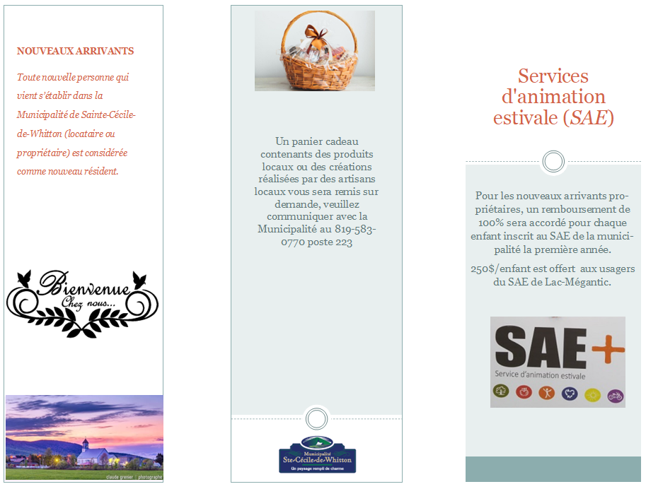 La présente politique a été pensée et développée par le comité de développement local de la municipalité dans le but d’assurer un premier contact avec les nouveaux arrivants, afin de faciliter leur intégration dans la collectivité et qu’ainsi, ils puissent développer leur sentiment d’appartenance à la communauté de Ste-Cécile, tous secteurs confondus.