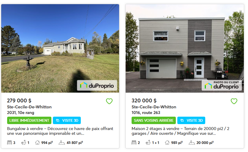 Nous répertorions ici les propriétés à vendre qui nous auront été transmises afin d'aider au processus de vente.