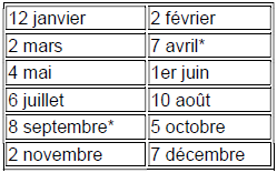 se tiendront le lundi (sauf en avril* et en septembre* où elles se tiendront un mardi)