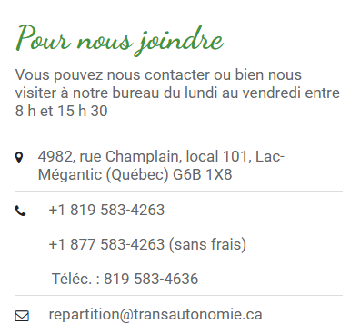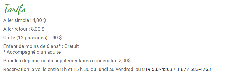 Réservation auprès de Trans-Autonomie toujours sur appel, 24 heures à l’avance.
